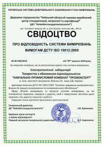 - Свідоцтво ISO 10012:2005